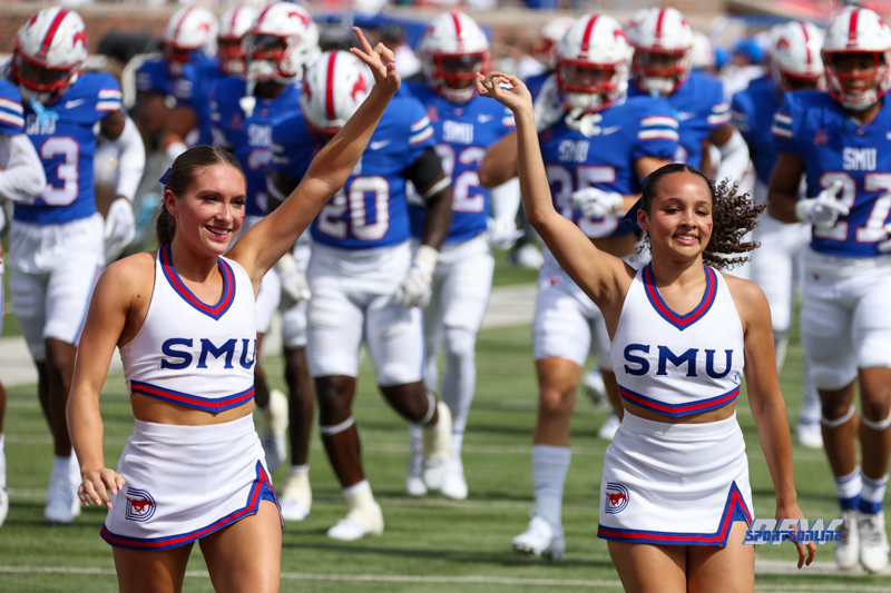 DALLAS, TX - SEPTEMBER 02: Southern Methodist Mustangs take the field during the game between SMU and Louisiana Tech on September 2, 2023 at Gerald J Ford Stadium in Dallas, TX. (Photo by George Walker/DFWsportsonline)
