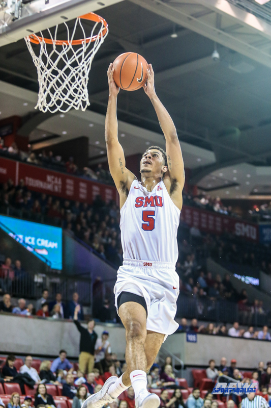 DALLAS, TX - NOVEMBER 08: Southern Methodist Mustangs guard Nat Dixon (5) goes to the basket during the game between SMU and Northwestern State on November 8, 2018 at Moody Coliseum in Dallas, TX. (Photo by George Walker/DFWsportsonline)