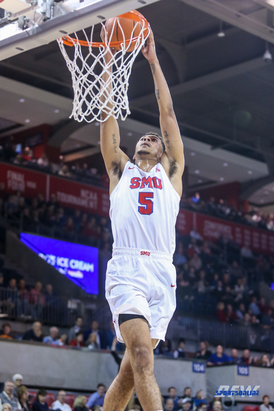 DALLAS, TX - NOVEMBER 08: Southern Methodist Mustangs guard Nat Dixon (5) goes to the basket during the game between SMU and Northwestern State on November 8, 2018 at Moody Coliseum in Dallas, TX. (Photo by George Walker/DFWsportsonline)