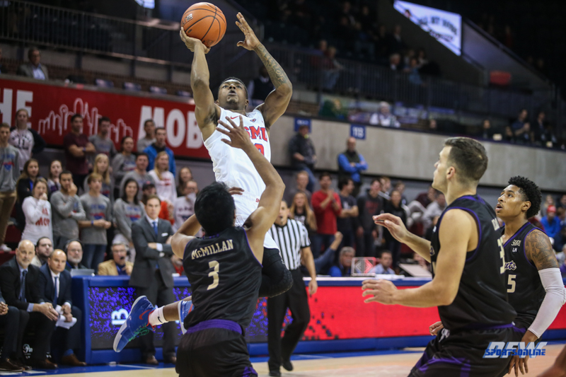 DALLAS, TX - NOVEMBER 14: Southern Methodist Mustangs guard Jahmal McMurray (0) during the game between SMU and Western Carolina on November 14, 2017 at Moody Coliseum in Dallas, TX. (Photo by George Walker/DFWsportsonline)