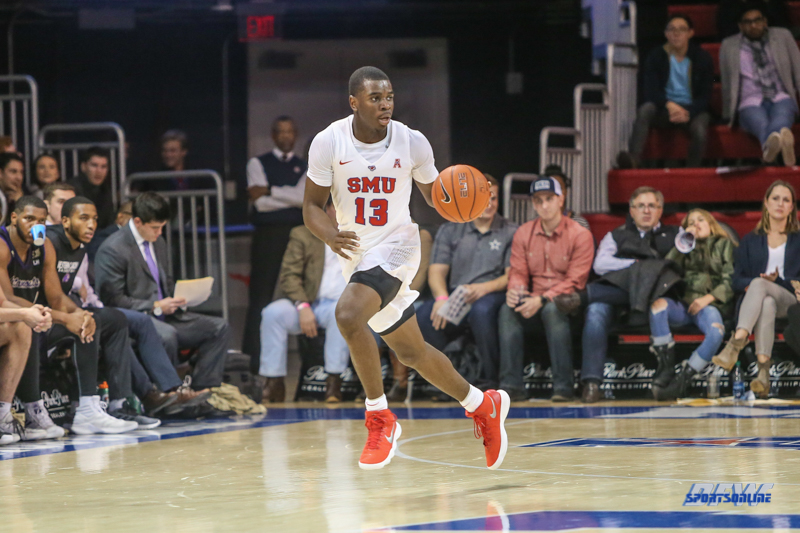 DALLAS, TX - NOVEMBER 14: Southern Methodist Mustangs guard CJ White (13) brings the ball up court during the game between SMU and Western Carolina on November 14, 2017 at Moody Coliseum in Dallas, TX. (Photo by George Walker/DFWsportsonline)