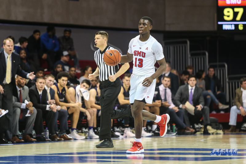 DALLAS, TX - NOVEMBER 14: Southern Methodist Mustangs guard CJ White (13) brings the ball up court during the game between SMU and Western Carolina on November 14, 2017 at Moody Coliseum in Dallas, TX. (Photo by George Walker/DFWsportsonline)