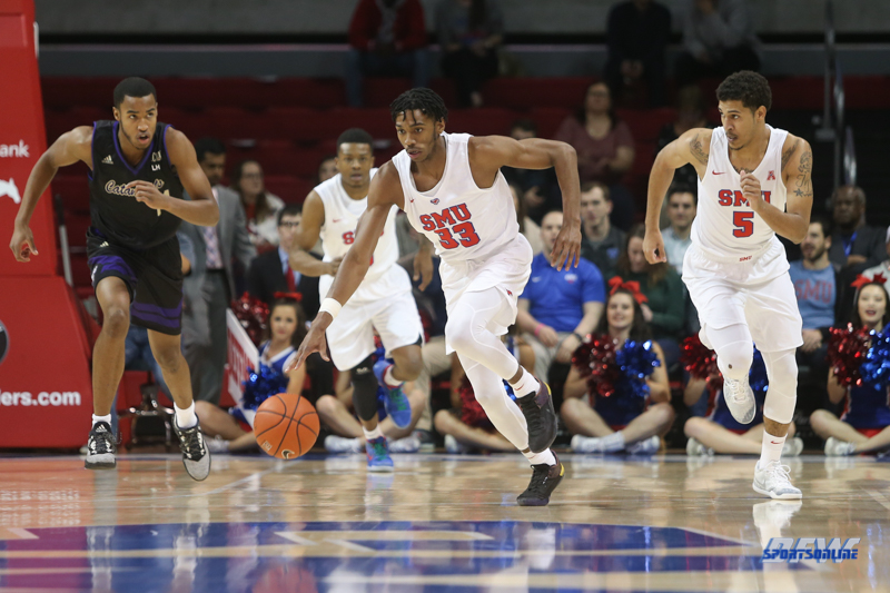 DALLAS, TX - NOVEMBER 14: Southern Methodist Mustangs guard Jimmy Whitt Jr. (33) brings the ball up court during the game between SMU and Western Carolina on November 14, 2017 at Moody Coliseum in Dallas, TX. (Photo by George Walker/Icon Sportswire)