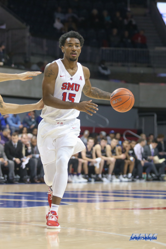 DALLAS, TX - NOVEMBER 14: Southern Methodist Mustangs forward Isiaha Mike (15) brings the ball up court during the game between SMU and Western Carolina on November 14, 2017 at Moody Coliseum in Dallas, TX. (Photo by George Walker/Icon Sportswire)