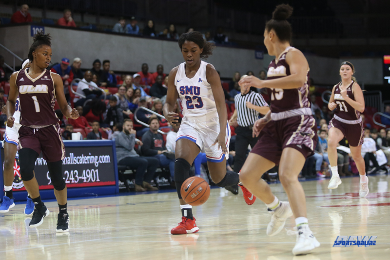 DALLAS, TX - NOVEMBER 09: Southern Methodist Mustangs forward BriShonne Tollie (23) drives to the basket during the game between SMU and ULM on November 9, 2018 at Moody Coliseum in Dallas, TX. (Photo by George Walker/DFWsportsonline)