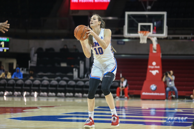 SMU took the lead 47 seconds into the game and never relinquished. The Mustangs assisted on 16-of-22 made baskets with Bacon leading the way with five dimes. Alicia Froling reached double-figures on the glass and chipped in three assists and a pair of blocks.
