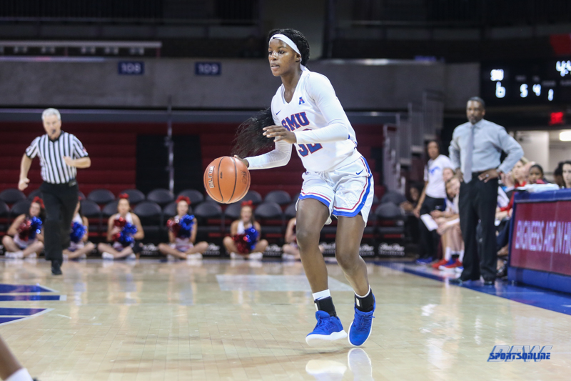 DALLAS, TX - NOVEMBER 12: Southern Methodist Mustangs guard Kayla White (32) during the game between SMU and Mississippi Valley State on November 12, 2018 at Moody Coliseum in Dallas, TX. (Photo by George Walker/DFWsportsonline)