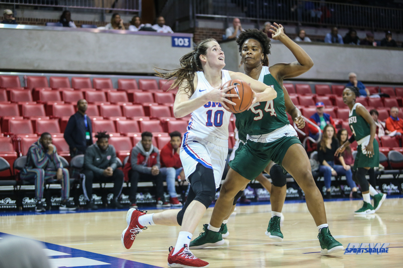 SMU took the lead 47 seconds into the game and never relinquished. The Mustangs assisted on 16-of-22 made baskets with Bacon leading the way with five dimes. Alicia Froling reached double-figures on the glass and chipped in three assists and a pair of blocks.