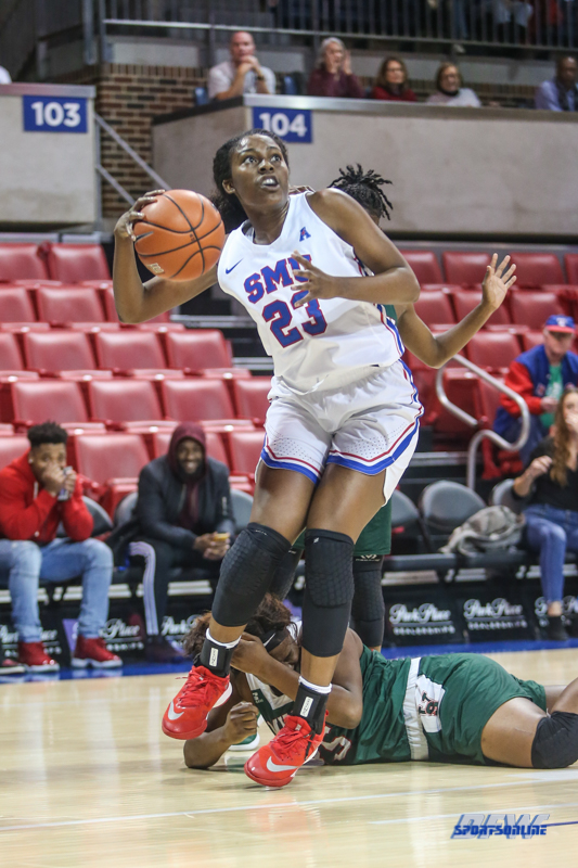 DALLAS, TX - NOVEMBER 12: Southern Methodist Mustangs forward BriShonne Tollie (23) goes to the basket during the game between SMU and Mississippi Valley State on November 12, 2018 at Moody Coliseum in Dallas, TX. (Photo by George Walker/DFWsportsonline)