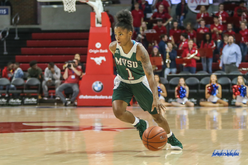 DALLAS, TX - NOVEMBER 12: Mississippi Valley State Devilettes guard LaKendra Bassett (1) during the game between SMU and Mississippi Valley State on November 12, 2018 at Moody Coliseum in Dallas, TX. (Photo by George Walker/DFWsportsonline)