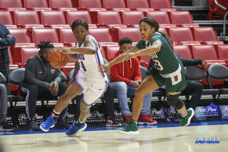 DALLAS, TX - NOVEMBER 12: Southern Methodist Mustangs guard Amber Bacon (4) drives to the basket during the game between SMU and Mississippi Valley State on November 12, 2018 at Moody Coliseum in Dallas, TX. (Photo by George Walker/Icon Sportswire)