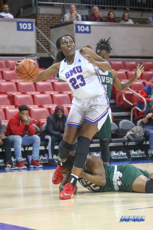 DALLAS, TX - NOVEMBER 12: Southern Methodist Mustangs forward BriShonne Tollie (23) goes to the basket during the game between SMU and Mississippi Valley State on November 12, 2018 at Moody Coliseum in Dallas, TX. (Photo by George Walker/Icon Sportswire)