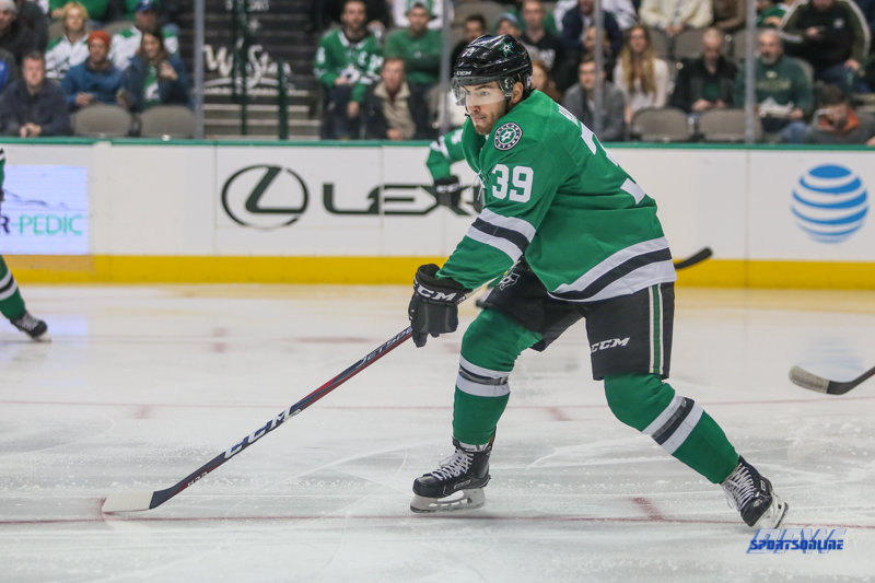 NOVEMBER 10: Dallas Stars Defenseman Joel Hanley (39) during the game between the Dallas Stars and Nashville Predators on November 10, 2018 at the American Airlines Center in Dallas, TX. (Photo by George Walker/DFWsportsonline)