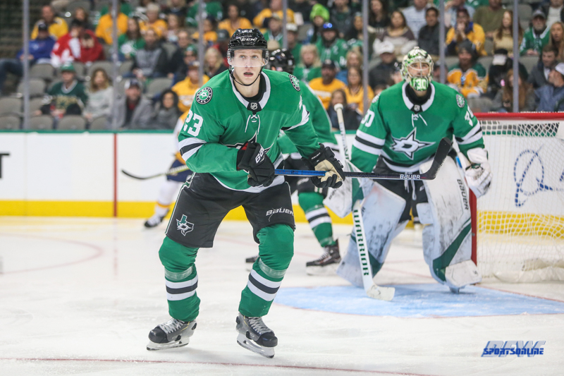NOVEMBER 10: Dallas Stars Defenseman Esa Lindell (23) during the game between the Dallas Stars and Nashville Predators on November 10, 2018 at the American Airlines Center in Dallas, TX. (Photo by George Walker/DFWsportsonline)