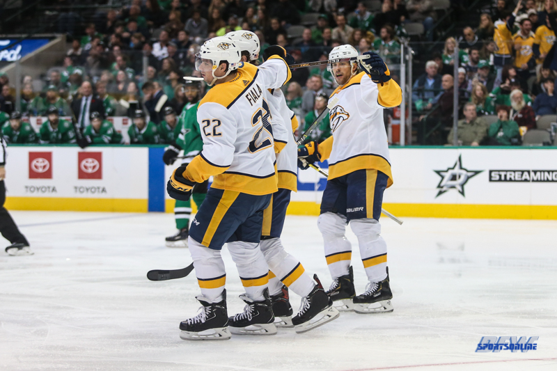 Tyler Pitlick got the Stars on the board when he snapped a wrist shot through traffic that beat Nashville goaltender Juuse Saros to the glove side with 6:55 to play in the first period. Radek Faksa got the assist on the tally for the Stars.