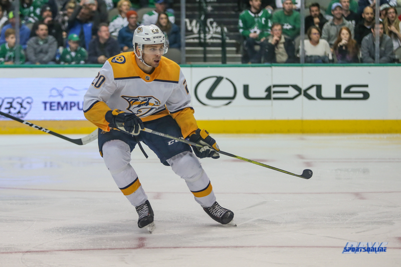 NOVEMBER 10: Nashville Predators Right Wing Miikka Salomaki (20) during the game between the Dallas Stars and Nashville Predators on November 10, 2018 at the American Airlines Center in Dallas, TX. (Photo by George Walker/DFWsportsonline)