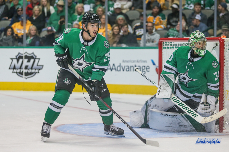 NOVEMBER 10: Dallas Stars Defenseman Joel Hanley (39) during the game between the Dallas Stars and Nashville Predators on November 10, 2018 at the American Airlines Center in Dallas, TX. (Photo by George Walker/DFWsportsonline)