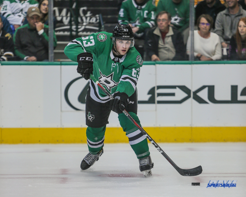 NOVEMBER 10: Dallas Stars Defenseman Ben Gleason (63) during the game between the Dallas Stars and Nashville Predators on November 10, 2018 at the American Airlines Center in Dallas, TX. (Photo by George Walker/DFWsportsonline)