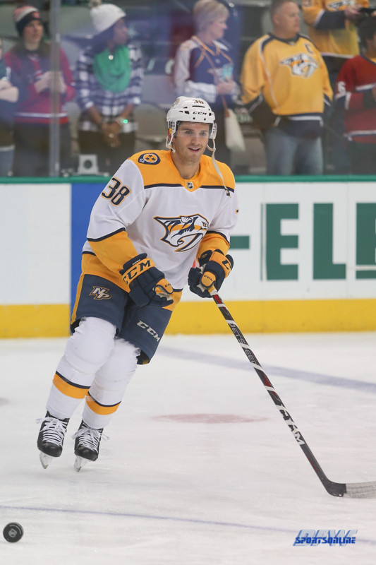 DALLAS, TX - NOVEMBER 10: Nashville Predators Winger Ryan Hartman (38) warms up for the game between the Dallas Stars and Nashville Predators on November 10, 2018 at the American Airlines Center in Dallas, TX. (Photo by George Walker/Icon Sportswire)