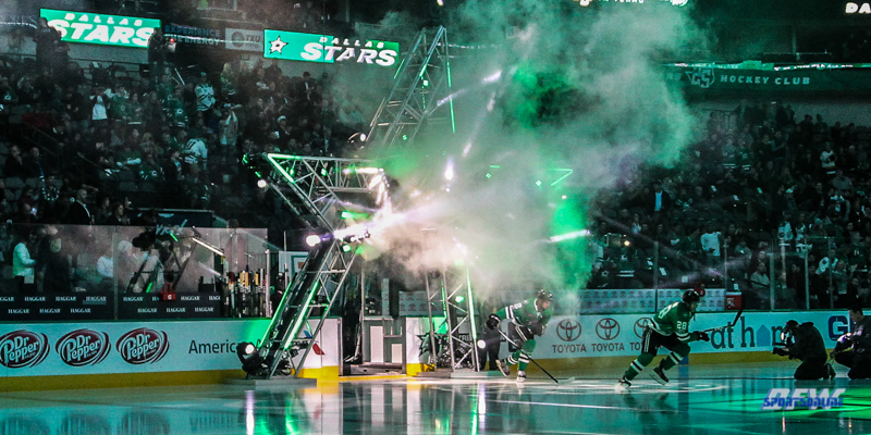 DALLAS, TX - DECEMBER 09: Dallas Stars take the ice for intros during the game between the Dallas Stars and Vegas Golden Knights on December 9, 2017 at the American Airlines Center in Dallas, TX. (Photo by George Walker/Icon Sportswire)