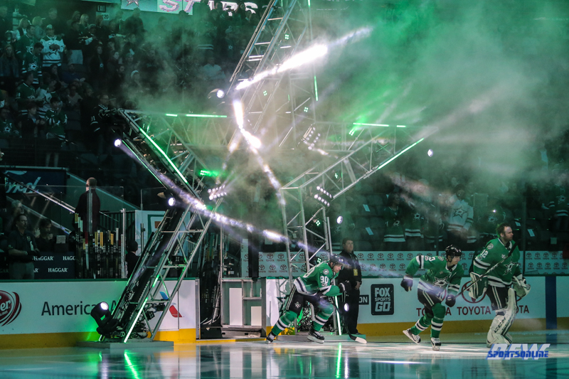 DALLAS, TX - DECEMBER 09: Dallas Stars take the ice for intros during the game between the Dallas Stars and Vegas Golden Knights on December 9, 2017 at the American Airlines Center in Dallas, TX. (Photo by George Walker/Icon Sportswire)
