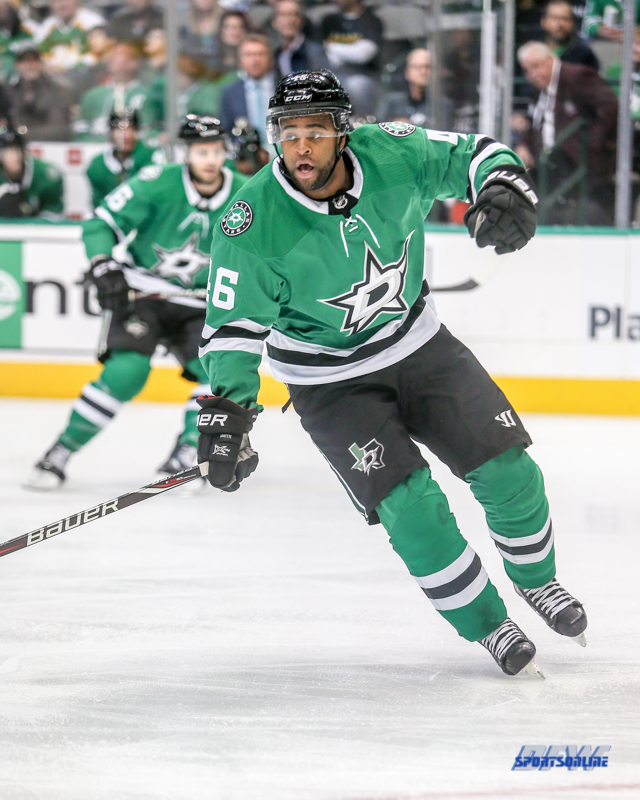 DALLAS, TX - OCTOBER 19: Dallas Stars Winger Gemel Smith (46) during the game between the Dallas Stars and Minnesota Wild on October 19, 2018 at the American Airlines Center in Dallas, TX. (Photo by George Walker/DFWsportsonline)