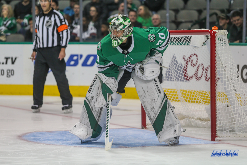 DALLAS, TX - OCTOBER 19: Dallas Stars Goalie Ben Bishop (30) during the game between the Dallas Stars and Minnesota Wild on October 19, 2018 at the American Airlines Center in Dallas, TX. (Photo by George Walker/DFWsportsonline)