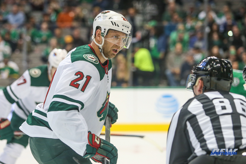 DALLAS, TX - OCTOBER 19: Minnesota Wild Center Eric Fehr (21) during the game between the Dallas Stars and Minnesota Wild on October 19, 2018 at the American Airlines Center in Dallas, TX. (Photo by George Walker/DFWsportsonline)