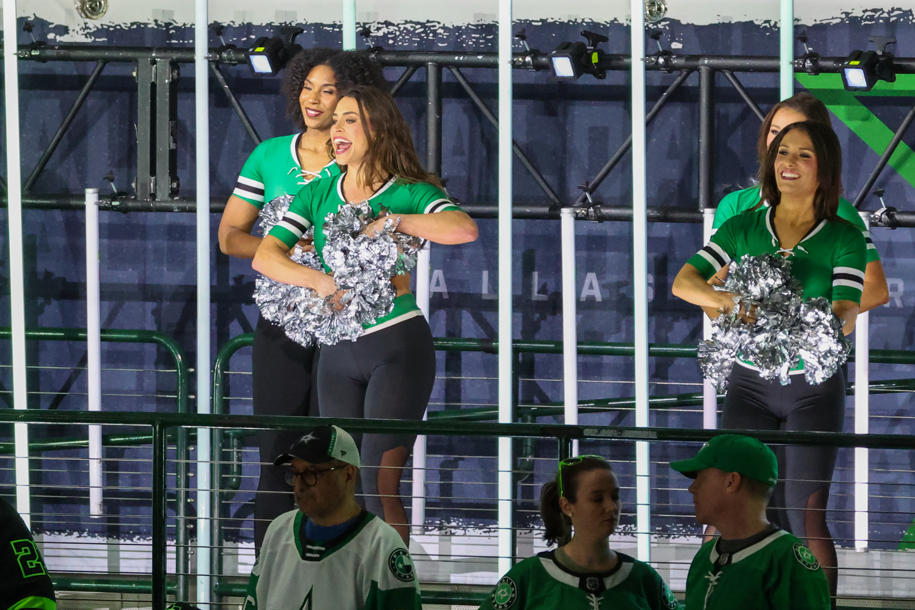 DALLAS, TX - APR 10: Dallas Stars Ice Girls perform during the game between the Dallas Stars and the Winnipeg Jets on April 10, 2025 at the American Airlines Center in Dallas, TX. (Photo by George Walker/DFWsportsonline)