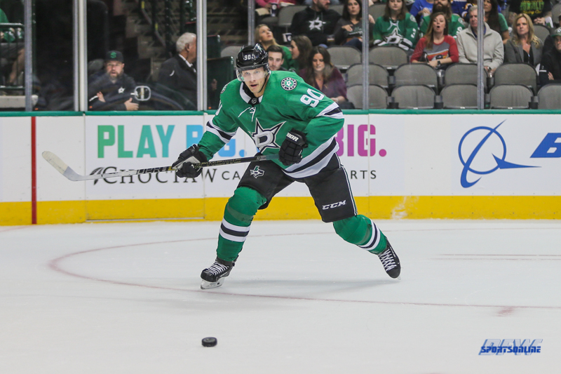 SEPTEMBER 18, 2018: Dallas Stars center Jason Spezza (90) goes after the puck during the game between the Dallas Stars and St. Louis Blues on September 18, 2018, at the American Airlines Center in Dallas, TX. (Photo by George Walker/DFWsportsonline)