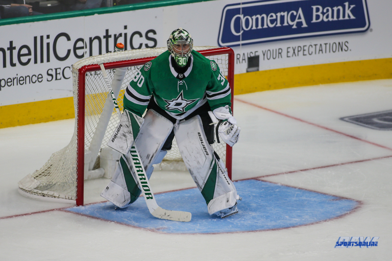 SEPTEMBER 18, 2018: Dallas Stars goaltender Ben Bishop (30) stands at the goal during the game between the Dallas Stars and St. Louis Blues on September 18, 2018, at the American Airlines Center in Dallas, TX. (Photo by George Walker/DFWsportsonline)
