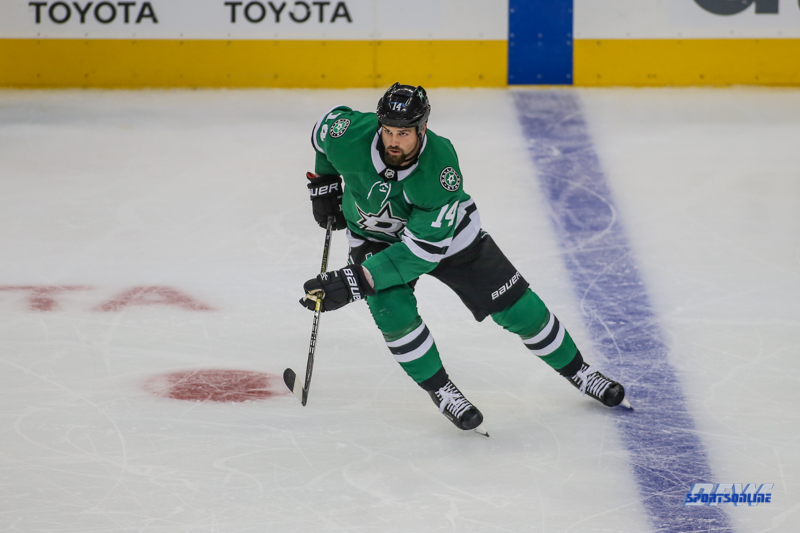 SEPTEMBER 18, 2018: Dallas Stars left wing Jamie Benn (14) skates during the game between the Dallas Stars and St. Louis Blues on September 18, 2018, at the American Airlines Center in Dallas, TX. (Photo by George Walker/DFWsportsonline)