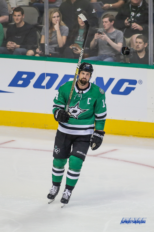 SEPTEMBER 18, 2018: Dallas Stars left wing Jamie Benn (14) skates during the game between the Dallas Stars and St. Louis Blues on September 18, 2018, at the American Airlines Center in Dallas, TX. (Photo by George Walker/DFWsportsonline)