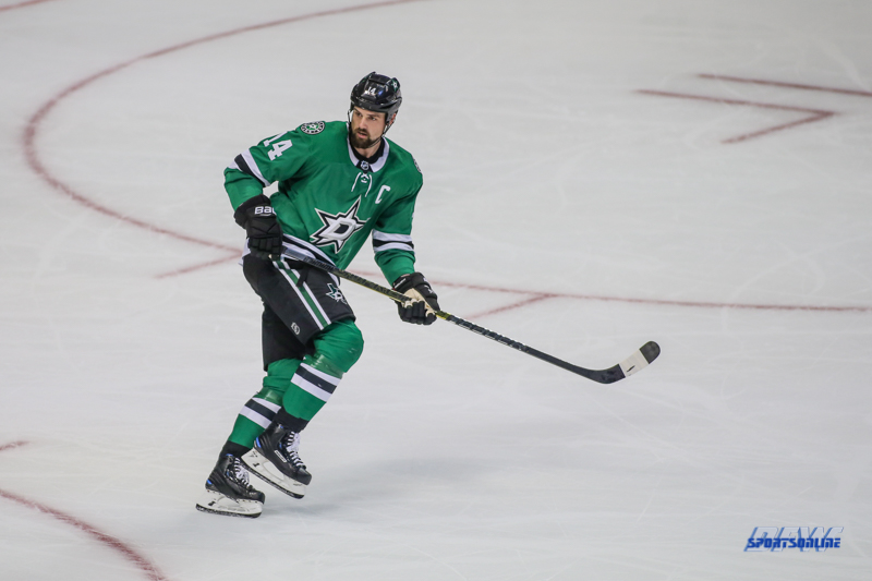 SEPTEMBER 18, 2018: Dallas Stars left wing Jamie Benn (14) skates during the game between the Dallas Stars and St. Louis Blues on September 18, 2018, at the American Airlines Center in Dallas, TX. (Photo by George Walker/DFWsportsonline)