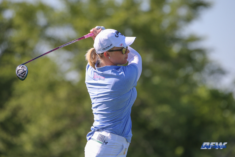 THE COLONY, TX - MAY 06: Morgan Pressel (USA) hits from the 9th tee during the Volunteers of America LPGA Texas Classic on May 6, 2018 at the Old American Golf Club in The Colony, TX. (Photo by George Walker/Icon Sportswire)