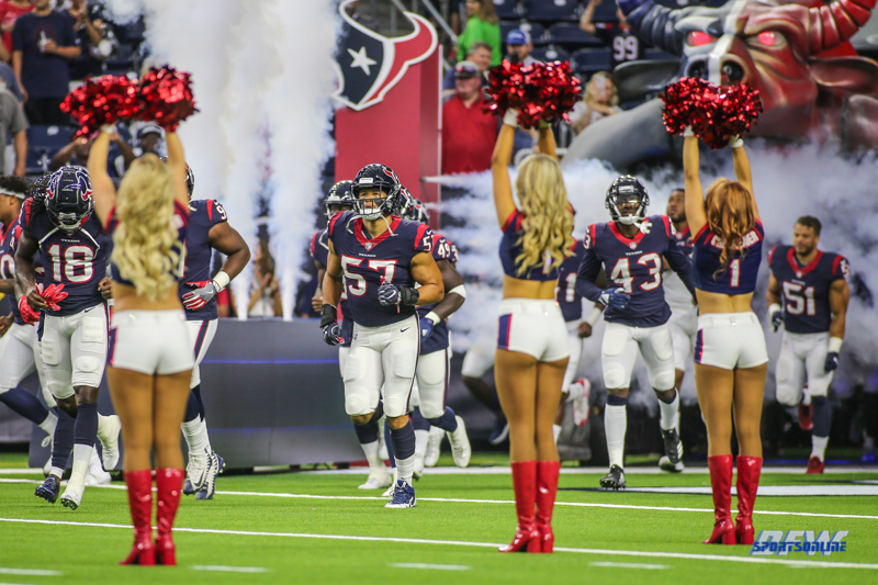 HOUSTON, TX - AUGUST 30: Houston Texans take the field for the preseason game between the Houston Texans and Dallas Cowboys on August 30, 2018, at NRG Stadium in Houston, TX. (Photo by George Walker/DFWsportsonline)