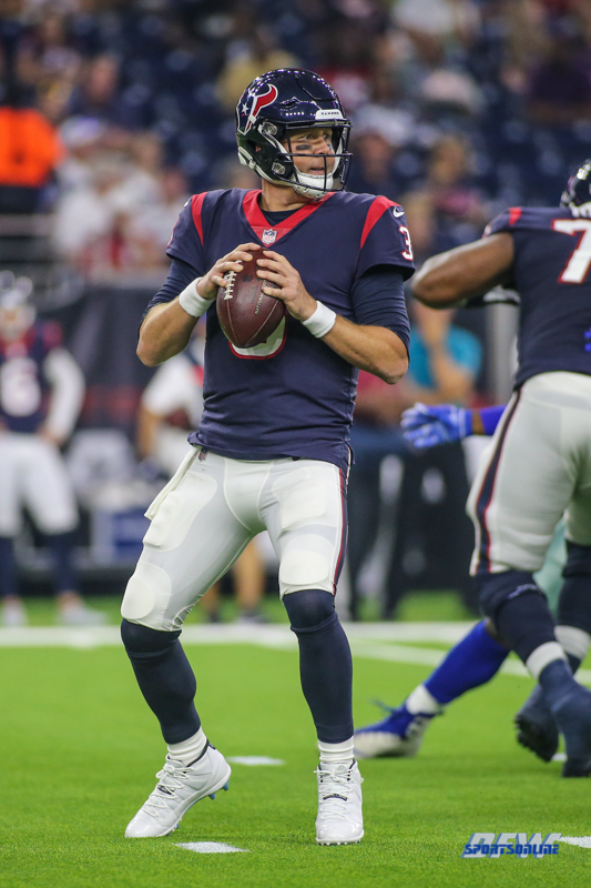 HOUSTON, TX - AUGUST 30: Houston Texans quarterback Brandon Weeden (3) passes during the preseason game between the Houston Texans and Dallas Cowboys on August 30, 2018, at NRG Stadium in Houston, TX. (Photo by George Walker/DFWsportsonline)
