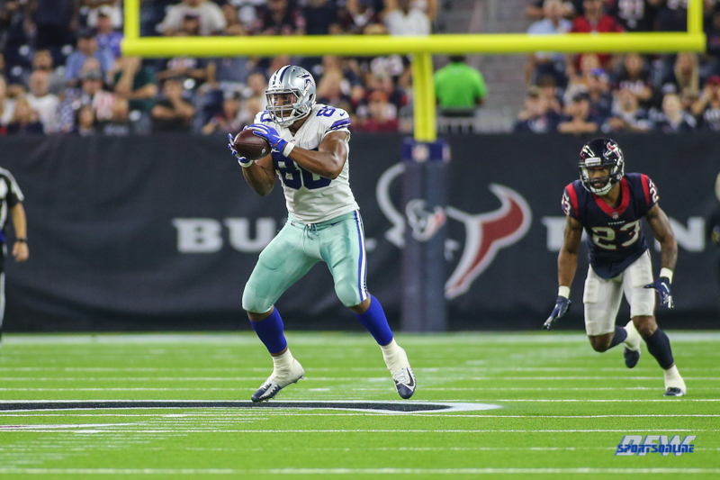 HOUSTON, TX - AUGUST 30: Dallas Cowboys tight end Rico Gathers (80) makes a catch during the preseason game between the Houston Texans and Dallas Cowboys on August 30, 2018, at NRG Stadium in Houston, TX. (Photo by George Walker/DFWsportsonline)