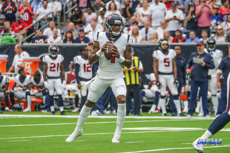 HOUSTON, TX - SEPTEMBER 23: Houston Texans quarterback Deshaun Watson (4) passes during the game between the Houston Texans and New York Giants on September 23, 2018, at NRG Stadium in Houston, TX. (Photo by George Walker/DFWsportsonline)