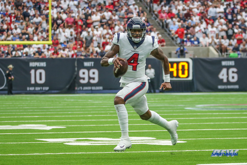 HOUSTON, TX - SEPTEMBER 23: Houston Texans quarterback Deshaun Watson (4) scrambles during the game between the Houston Texans and New York Giants on September 23, 2018, at NRG Stadium in Houston, TX. (Photo by George Walker/DFWsportsonline)