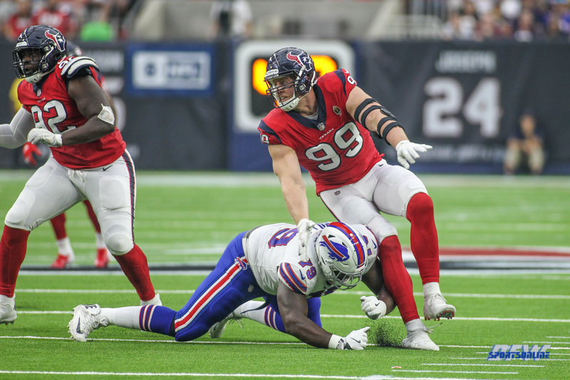 HOUSTON, TX - OCTOBER 14: Houston Texans defensive end J.J. Watt (99) during the game between the Houston Texans and Buffalo Bills on October 14, 2018, at NRG Stadium in Houston, TX. (Photo by George Walker/DFWsportsonline)