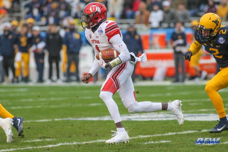 DALLAS, TX - DECEMBER 26: Utah Utes quarterback Tyler Huntley (1) runs upfield during the Zaxby's Heart of Dallas Bowl game between Utah and West Virginia on December 26, 2017, at Cotton Bowl Stadium in Dallas, TX. (Photo by George Walker/Icon Sportswire)