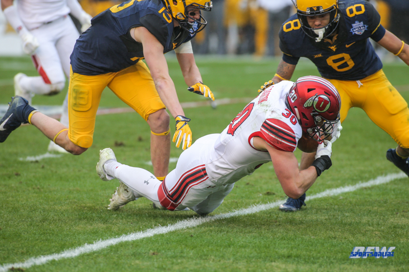 DALLAS, TX - DECEMBER 26: Utah Utes linebacker Cody Barton (30) recovers a muffed punt during the Zaxby's Heart of Dallas Bowl game between Utah and West Virginia on December 26, 2017, at Cotton Bowl Stadium in Dallas, TX. (Photo by George Walker/Icon Sportswire)