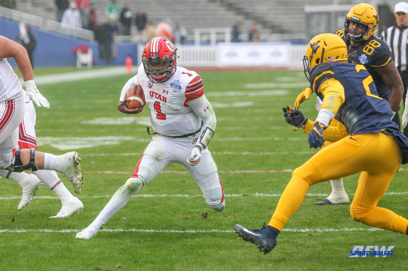 DALLAS, TX - DECEMBER 26: Utah Utes quarterback Tyler Huntley (1) runs toward the goal line during the Zaxby's Heart of Dallas Bowl game between Utah and West Virginia on December 26, 2017, at Cotton Bowl Stadium in Dallas, TX. (Photo by George Walker/Icon Sportswire)